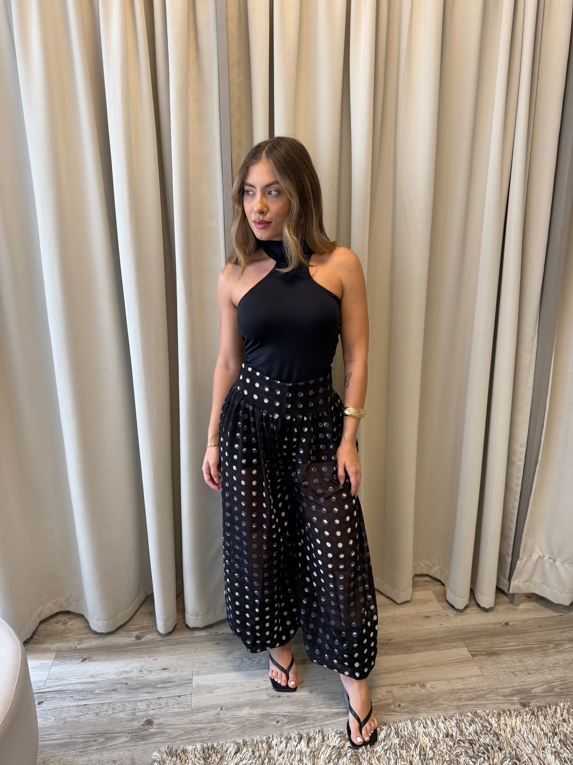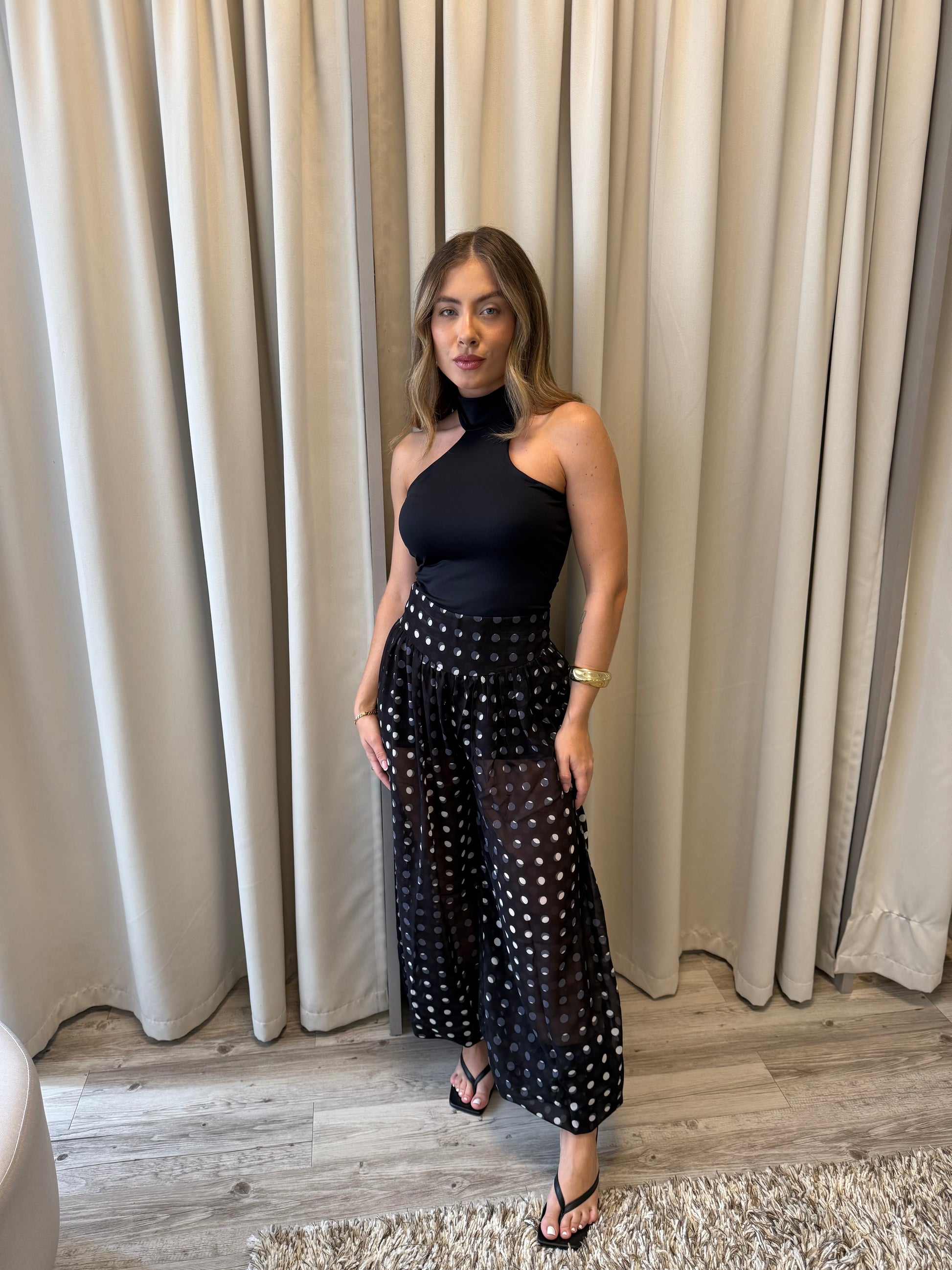 Com modelagem ampla e fluida, a calça Aladim traz elástico na parte de trás e nos punhos para mais conforto e caimento leve. Confeccionada em chiffon glass, garante leveza e estilo para looks modernos e descomplicados.