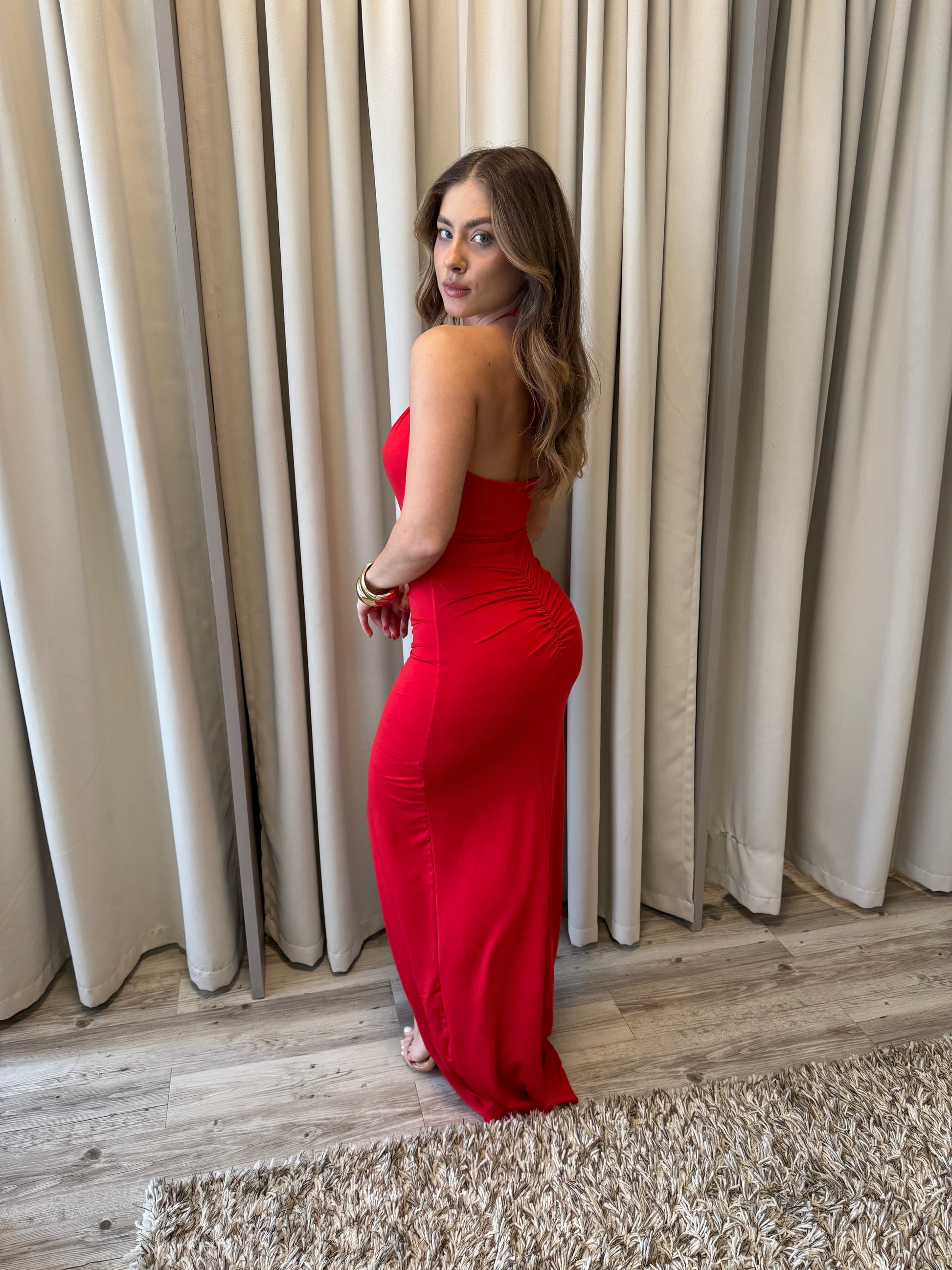 O Vestido Yasmin é a escolha perfeita para mulheres que adoram elegância e sofisticação. Com seu design de frente única e um decote profundo, este vestido se destaca pela argola no busto, que traz um toque de modernidade e charme.